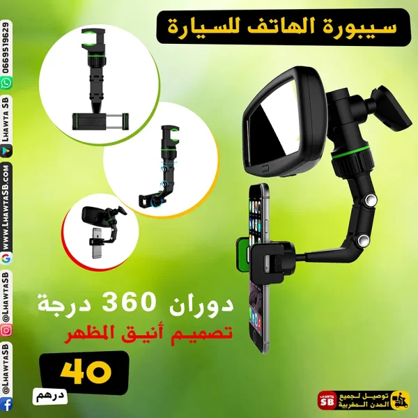 حامل هاتف السيارة بزاوية دوران 360° وتصميم مخفي