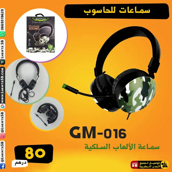 سماعة الألعاب السلكية GM-016 مع ميكروفون وإلغاء الضوضاء