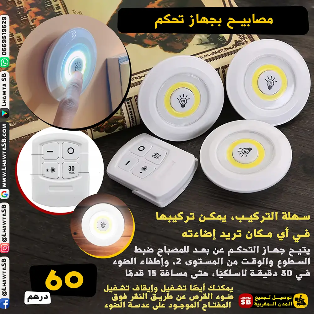 مصباح LED صغير عملي يوفر إضاءة فعالة وسهلة الاستخدام في أي مكان. يمكن التحكم فيه مباشرة عن طريق الصنبور على المصباح أو باستخدام جهاز التحكم عن بعد، مع إمكانية ضبط السطوع والوقت، مما يجعله مثاليًا للمطابخ، الخزائن، الأرفف، الجراجات، أو أي مكان مظلم يحتاج لإضاءة سريعة وفعالة.