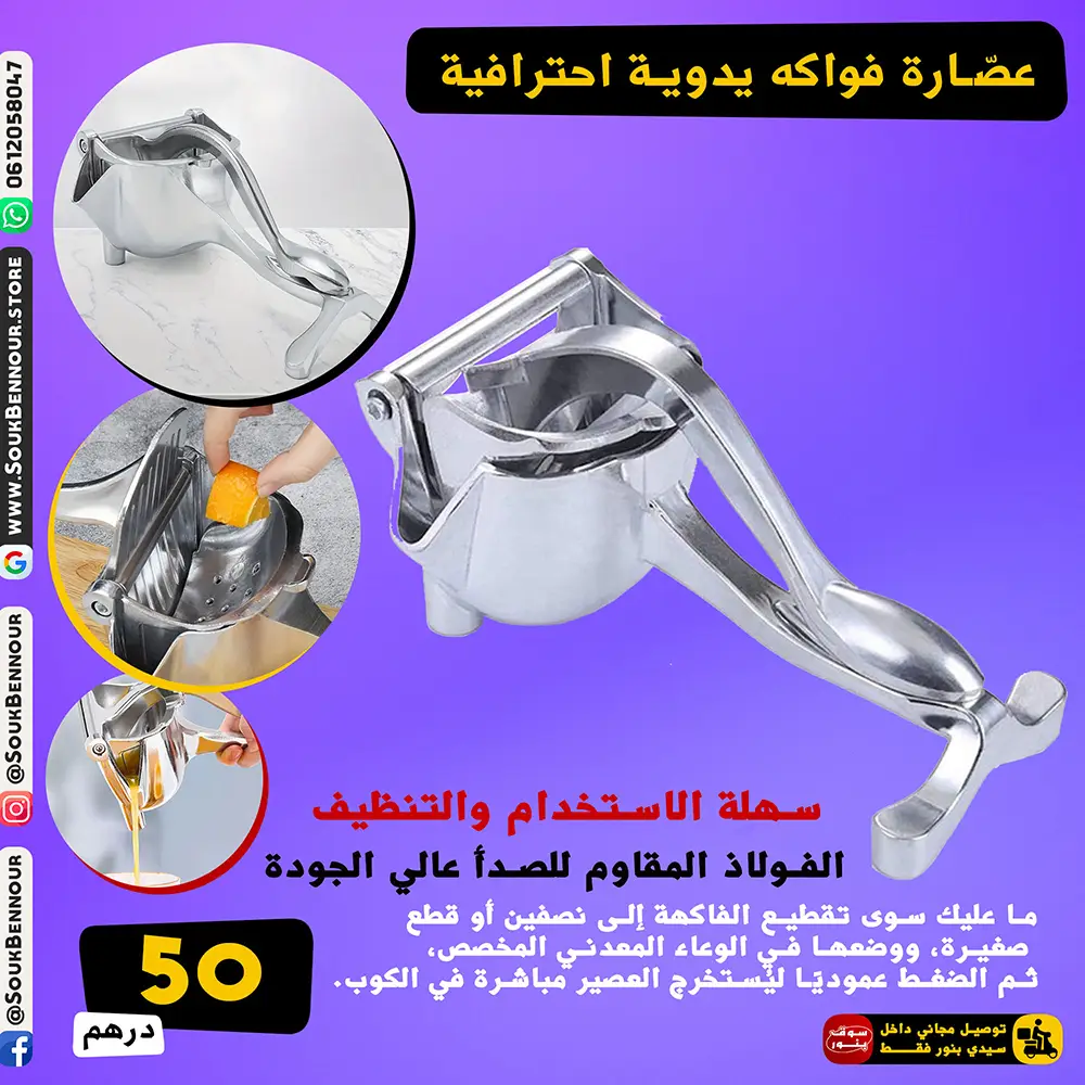 استمتع بعصير طبيعي ومنعش في كل صباح مع العصّارة اليدوية الاحترافية المصنوعة بالكامل من الستانلس ستيل، المصممة لتناسب الاستخدام المنزلي والمهني على حدّ سواء.