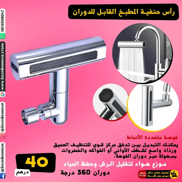 رأس حنفية المطبخ القابل للدوران